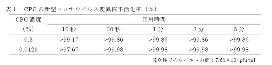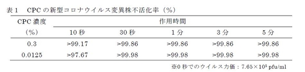 CPC(セチルピリジニウム塩化物水和物)の 新型コロナウイルス変異株(オミクロン株)に対する不活化作用