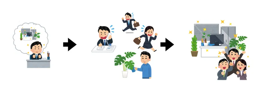 オフィスに観葉植物を置きたい企業がある一方で、水やりの量、枝や葉の調整などの知識や経験が不足しているために管理の仕方に不安を抱えて相談される事がありました。そこで、売って終わりではなく、ガーデナーの管理サポートがサービスとしてついた観葉植物を販売することにいたしました。
