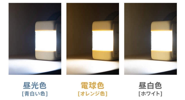 昼光色、電球色、昼白色の3つのパターンの明かりを備えています。さらに、3段階の明るさ調節も可能。避難時は昼光色を強く、避難所では電球色を弱くなど、状況に応じて変更することが出来ます。