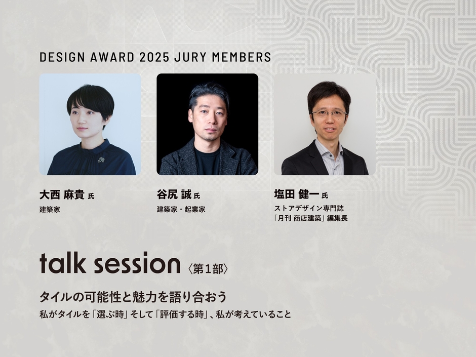 なお、今回は節目となる第10回を記念して、10月29日から31日までの3日間、アニヴェルセル表参道4Fにてデザインアワード歴代受賞作品の施工例写真と実際の使用タイルを展示し、これまでの軌跡を振り返る受賞作品展を開催します。さらに、31日は「デザインアワード2025」の表彰式と、審査員によるトークセッションも開催し、これからの空間づくりに活かせるヒントやインスピレーションをお届けします。これまでの10年と、これからの10年へ。タイルの可能性を信じ、共に歩んでくださったすべての方に感謝を込めて。ぜひ会場で、その軌跡と未来を体感してください。