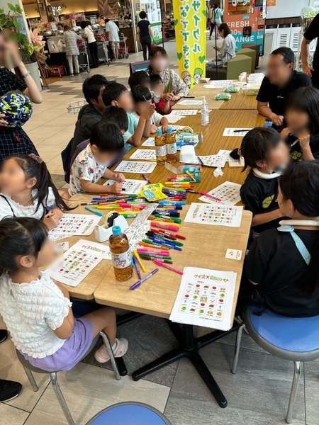 “おいしい” “ワクワク” “ハッピー” をお届けするライフコーポレーションは、サントリーフーズ株式会社と協同で6月22日(土)に八戸ノ里店、29日(土)にセントラルスクエア西大路花屋町店で親子向けイベントを開催しました。ビンゴや水のワークショップ、リサイクルを学ぶぬりえイベントを実施し、2日間合計で約90名の親子にご参加いただきました。