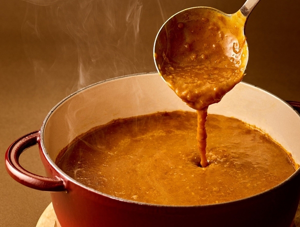 じっくりとソテーした玉ねぎにきのこを加え、トマトの旨みや果物・野菜などの自然な甘さ、赤ワインのコク深さを合わせることで、本格的で濃厚な味わいの欧風カレーを実現しました。
