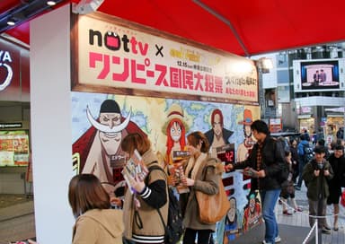 2012年12月10日 18:00スマートフォン向け放送局「NOTTV」(ノッティーヴィー)は、2012年12月8日・9日の2日間、「SHIBUYA 109」特設ステージにて、「ワンピース国民大投票イベント」を開催しました。