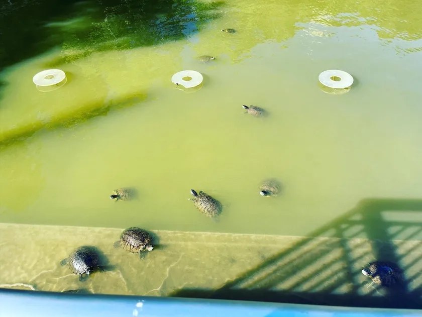 大阪府の泉北地域に位置し、日本で最も面積の狭い自治体である忠岡町の役場敷地内にある池は、地元では多数の亀が生息していることで知られていますが、水質の汚染が深刻で透明度がほとんど失われています。