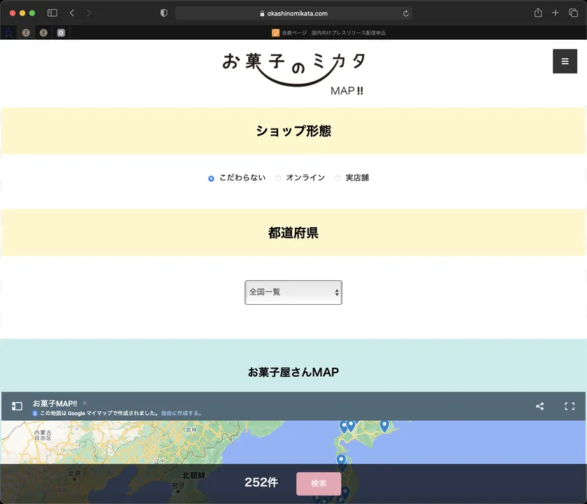 2022年8月8日(月)現在で掲載洋菓子店の数は「252件」。これはお菓子のミカタの取引店舗のごく一部で、現在順次掲載準備・許可取りを進め、今後も件数は増えていく予定です。