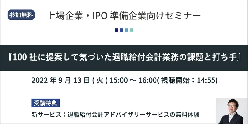 上場企業・IPO準備企業向けセミナーを9月13日(火)開催 100社に提案して気づいた退職給付会計業務の課題と打ち手を解説