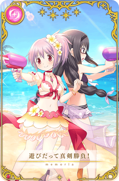 『有償限定 ステップアップガチャ 鹿目まどか 水着ver.編』では、下記ピックアップ対象の魔法少女およびメモリアの提供割合がアップしております。
