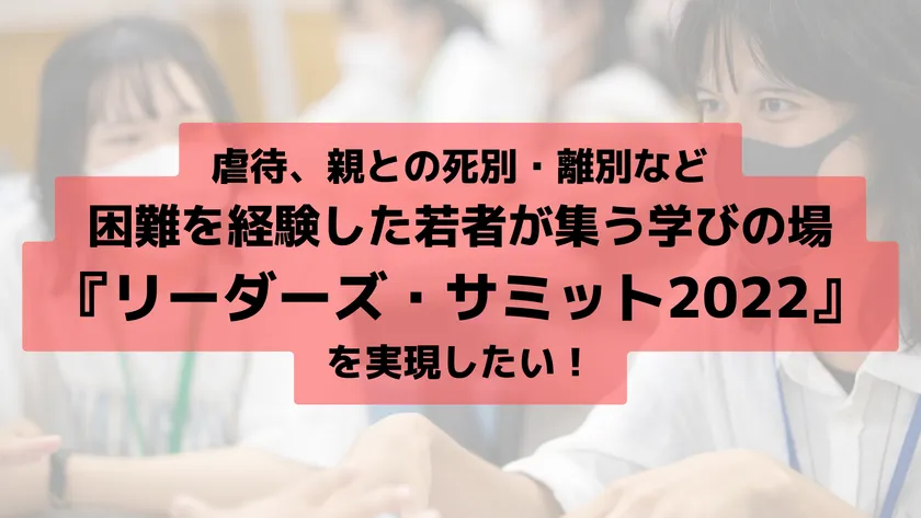 一般財団法人教育支援グローバル基金(本部:東京都渋谷区、代表理事:橋本 大二郎・元高知県知事)は、成育環境において困難な体験をもつ学生たちが全国から集まり、苦境にある若者たちの未来のために必要な施策を考え、アクションプランにまとめた成果を発表する提言発表会『ジャパン未来リーダーズサミット2022』を2022年10月8日(土)~10日(月・祝)に開催いたします。それに先駆け、『ジャパン未来リーダーズサミット2022』のクラウドファンディングを2022年8月1日(月)から開始いたしました。