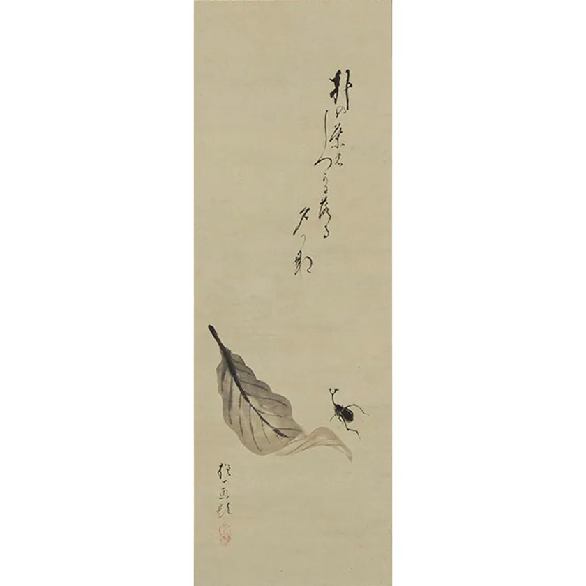 酒井抱一「朴の葉虫画賛」