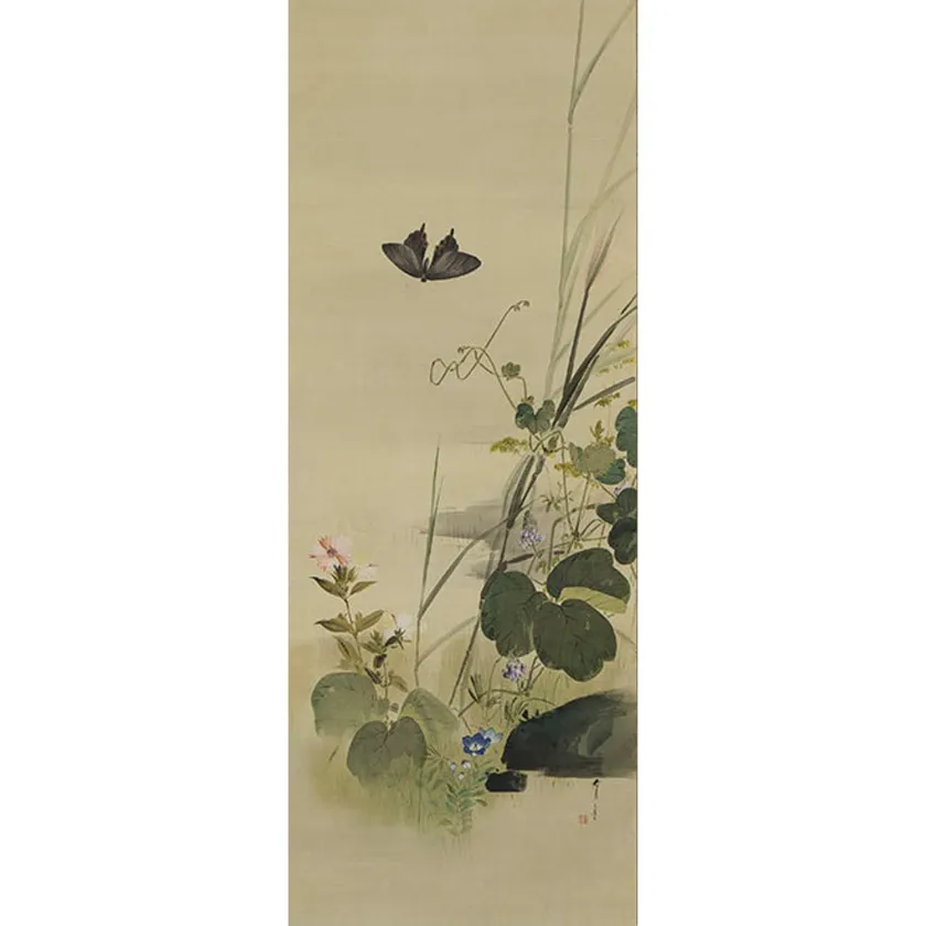 渡邊省亭「秋草蝶図」