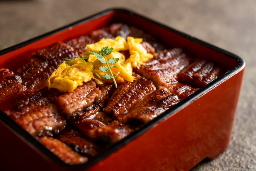 そのほか、ランチには、新鮮な魚をしょうゆダレに漬け込んだ大分県の郷土料理「りゅうきゅう」をはじめ、鹿児島県産黒豚のとんかつ、「はかた一番どり」の水炊きやスープにこだわった博多とんこつラーメンなどが登場。また、ディナーには、玄界灘で漁師が一本一本精魂込めて釣り上げたヤリイカ「一本鎗(いっぽんやり)」の刺身や、佐賀県産の深山米「夢しずく」と“幻のキノコ”とも呼ばれる香り高い「博多すぎたけ」を使ったリゾット、博多名物のもつ鍋、鹿児島産の芋焼酎で煮込んだ「かごしま黒豚」の角煮など、九州各地の郷土料理から地元食材にシェフのアレンジを効かせた料理まで多彩なメニューが並びます。
