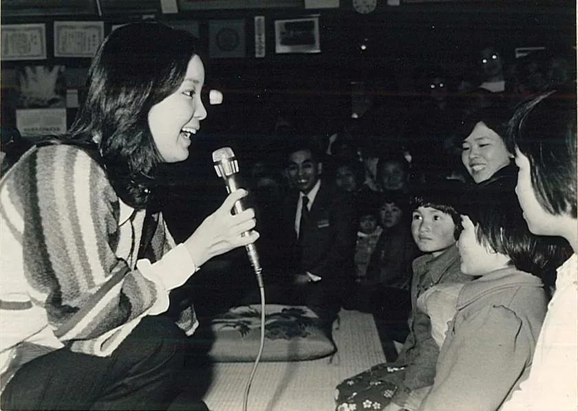 ミニコンサートで歌うテレサ(1977年三島町内)