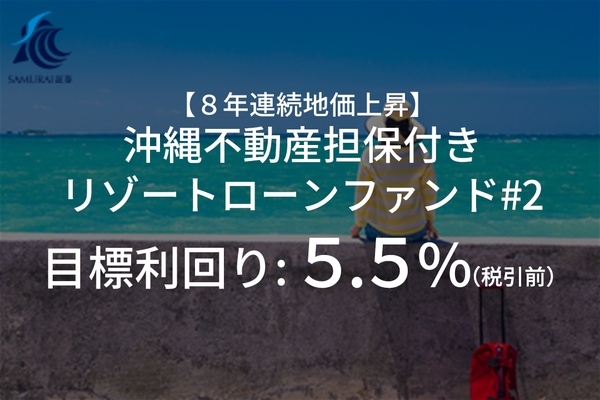 個人投資家にさまざまな投資機会を提供するための新たな資産運用プラットフォーム「SAMURAI FUND」を運営するSAMURAI 証券株式会社(本社:東京都港区、代表取締役社長:山口 慶一)は、新商品『【8年連続地価上昇】沖縄不動産担保付きリゾートローンファンド#2』を公開いたしました。
