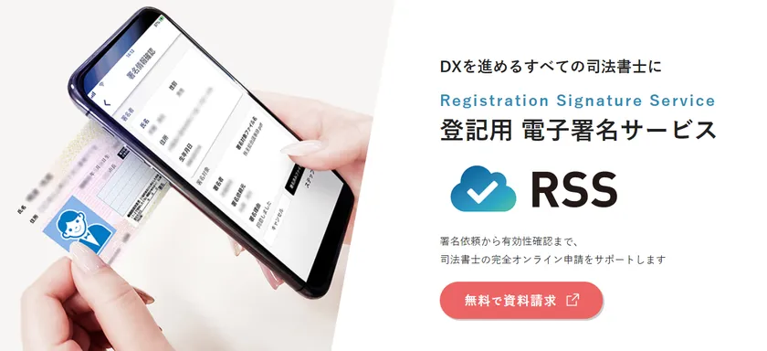 そこで「RSS」を提供することで、より簡単かつセキュアにマイナンバーカードを登記申請で活用いただけるようになり、登記業務のDX化を支援いたします。