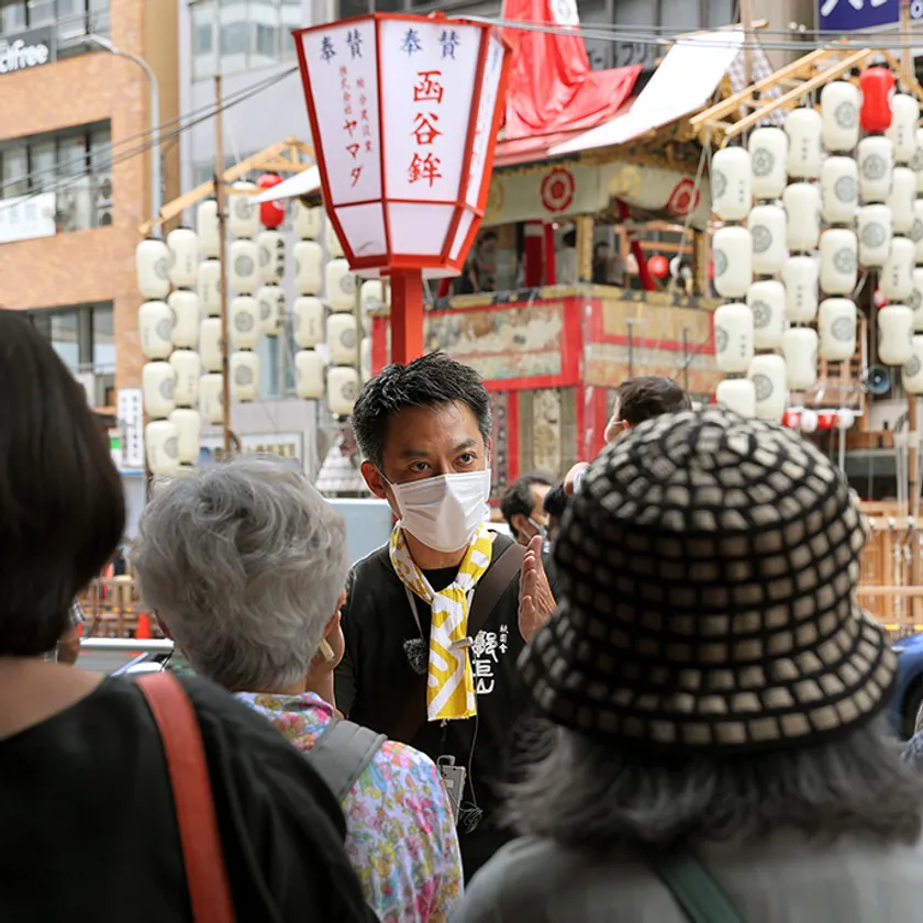 京都の人にとって暮らしの一部とも言えるほど大切にされてきた「祇園祭」。祇園祭前祭(さきまつり)宵々山の日に山鉾を巡りながら、千年以上受け継がれてきた祇園祭の歴史、鉾や山の絢爛豪華な懸装品について学んでいただきました。山鉾を巡った後は、創業から約260年の歴史を受け継ぐ「京料理 二傳」の若主人から骨切りなどの説明を聞き、実際に鱧料理を京町家で味わっていただきました。