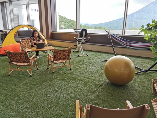 ニセコマウンテンリゾート グラン・ヒラフでは、マウンテンセンター2Fのタンタ・アン(冬季レストラン)をワークプレイス(シェアオフィス)として改装してご利用いただけます。百名山「羊蹄山(蝦夷富士)」の絶景を眺めながらの作業、仕事の合間にはリラクゼーションスペースで一息つきリラックスすることもできます。