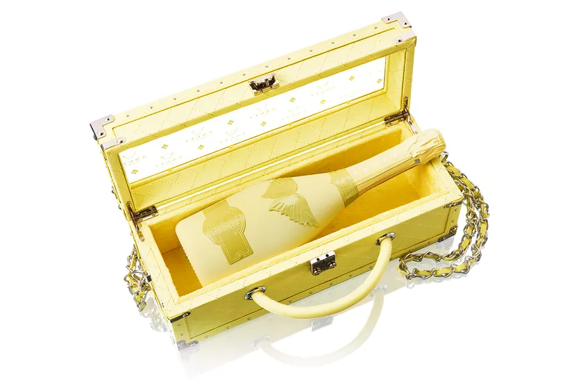 ANGEL CHAMPAGNE NV Demi Sec Rose Limited SummerはANGEL CHAMPAGNE NV Demi Sec Roseをベースとし、可愛らしいパステルイエローが特徴的なボトル、シャンパンケース。