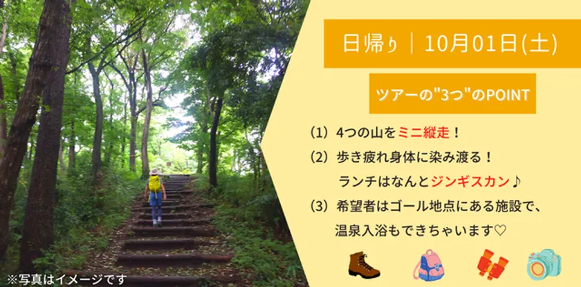 ようやく暑さがひと段落する10月は、ハイキングやボルダリング、森林セラピーなど、身体を動かす「スポーツの秋」をテーマにしたツアーを多数取り揃えました。