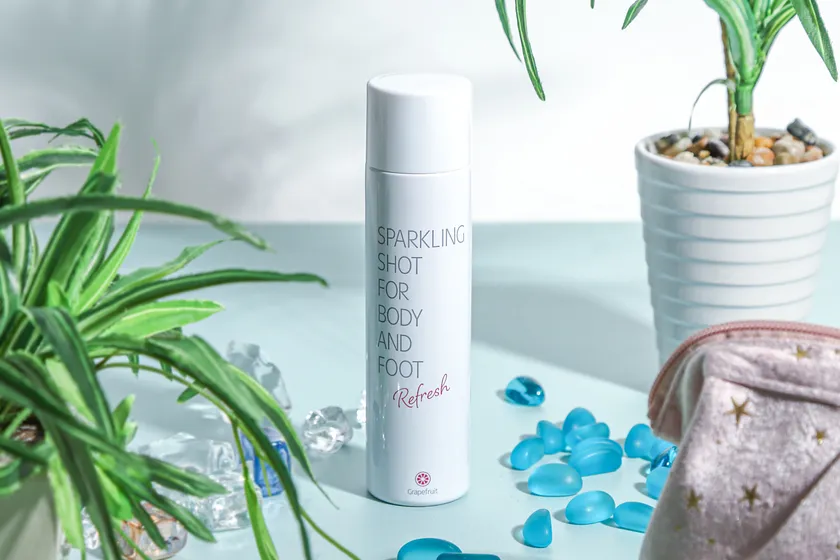 LPGを含むスプレータイプの商品中、配合できる最大濃度である10,000ppmを配合し、弾ける音はもちろん肌で炭酸を感じていただけるようになっています。