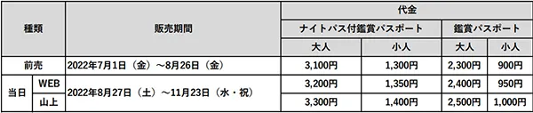 ※ナイトパス付鑑賞パスポートは有料会場への入場と、夜間作品を期間限定で公開する「ひかりの森~夜の芸術散歩~」会場への入場がセットになったパスポートです。