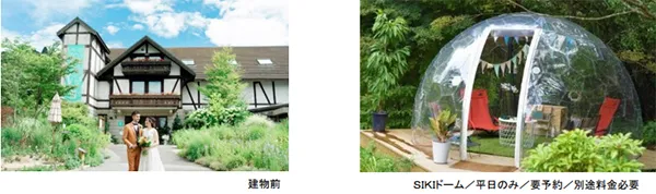 「SIKIガーデン」で結婚式の前撮り撮影をしたい、という多くのお客様の声から6月10日(金)より「ウェディングフォトプラン」を開始しました。通常のプランではROKKO森の音ミュージアムの営業時間中、施設内の森のCafe(※2)やSIKIドームなどの人気スポットで、四季折々に表情を変える花木の風景の中で六甲山の風を感じながら開放的な空間で、思い出の写真を撮影していただけます。