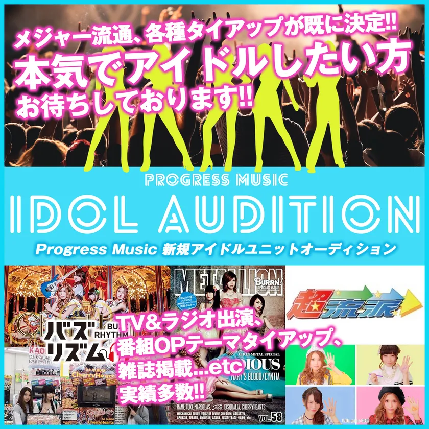 ProgressMusicは、提携ライブハウスでの積極的なライブ活動、積極的なリリース、MV撮影などプロとして活動できる方を募集しており、この度新規アイドルグループメンバーの募集を開始いたします。