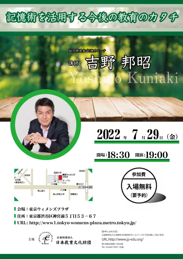 <開催報告> 公益財団法人「日本教育文化財団」主催 脳力開発家・記憶力コーチ 吉野 邦昭による 「記憶術を活用する今後の教育のカタチ」を2022年7月に開催