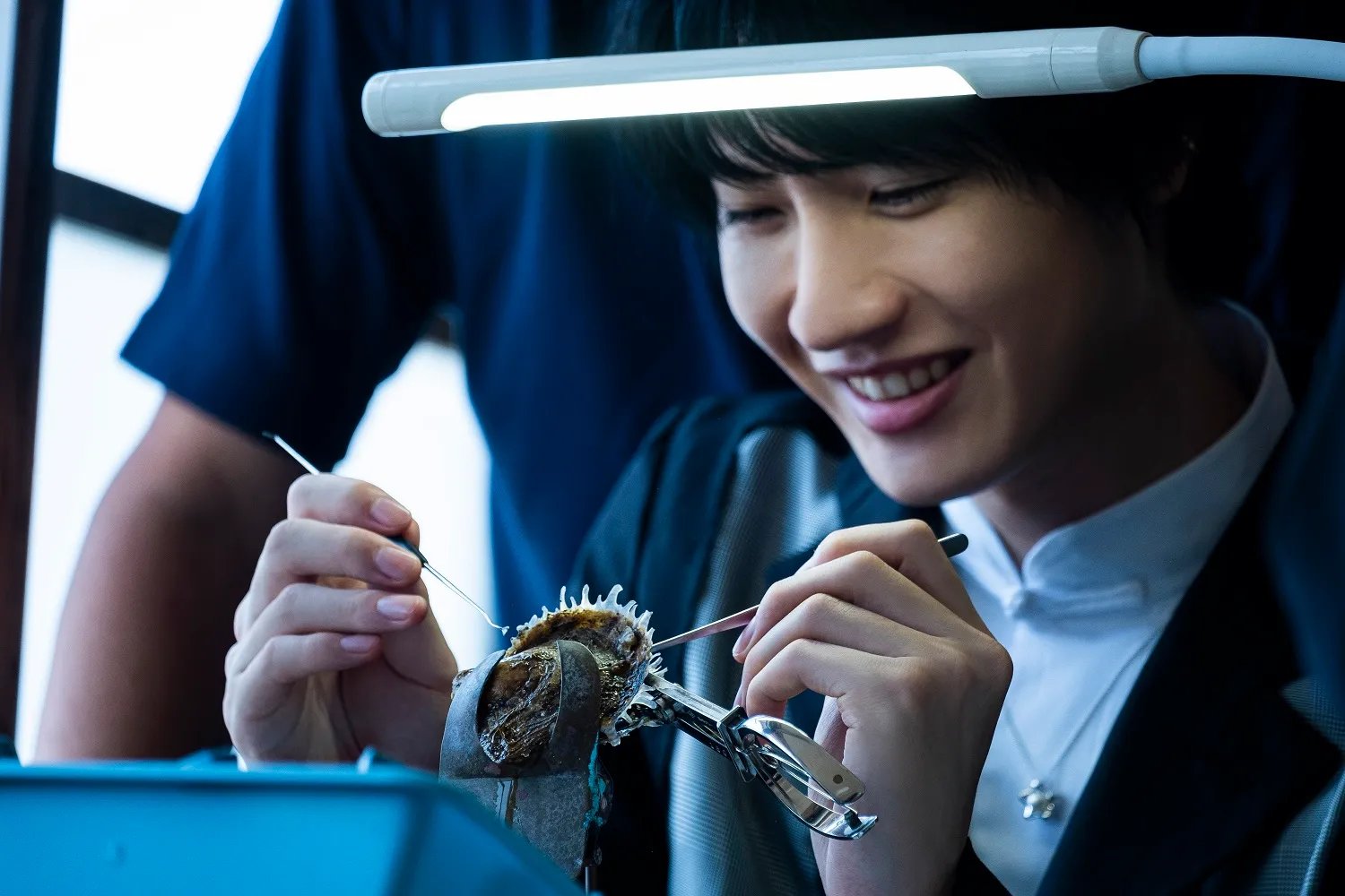 実際に職人が作業をしている部屋で、桜田さんが「挿核作業」を体験。その難しさに苦戦しつつ、職人の細かい手作業によって行われていることを知ります。その後、アコヤ貝を守り、育てるために研究を重ねている真珠研究所へ。海の環境を観測し、異常が生じると貝からSOSのメールが届く独自の装置「貝リンガル」についてや、「ゼロエミッション」への取り組みとして、養殖の過程で廃棄物になってしまう貝殻や貝肉を装飾品や化粧品として活用していることについて学んだ桜田さん。ミキモトのサステイナブルな取り組みに触れ、「自然のことも大切にできている上でこんなに素敵なものが身につけられるって、こんな幸せなことはないですよね。より一層、僕はパールというものに魅了されてしまいました」と語っています。