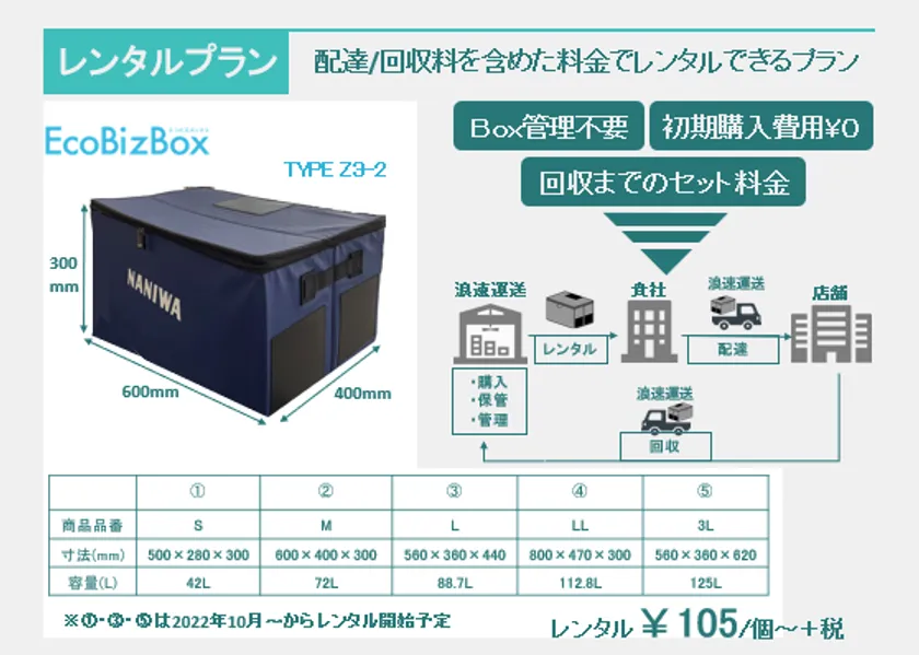 そこで浪速運送では、ボックスの貸し出しに加え、空ボックスの配達・使用後の回収までを一貫して行う、新たなエコビズレンタルサービスを開始いたしました。