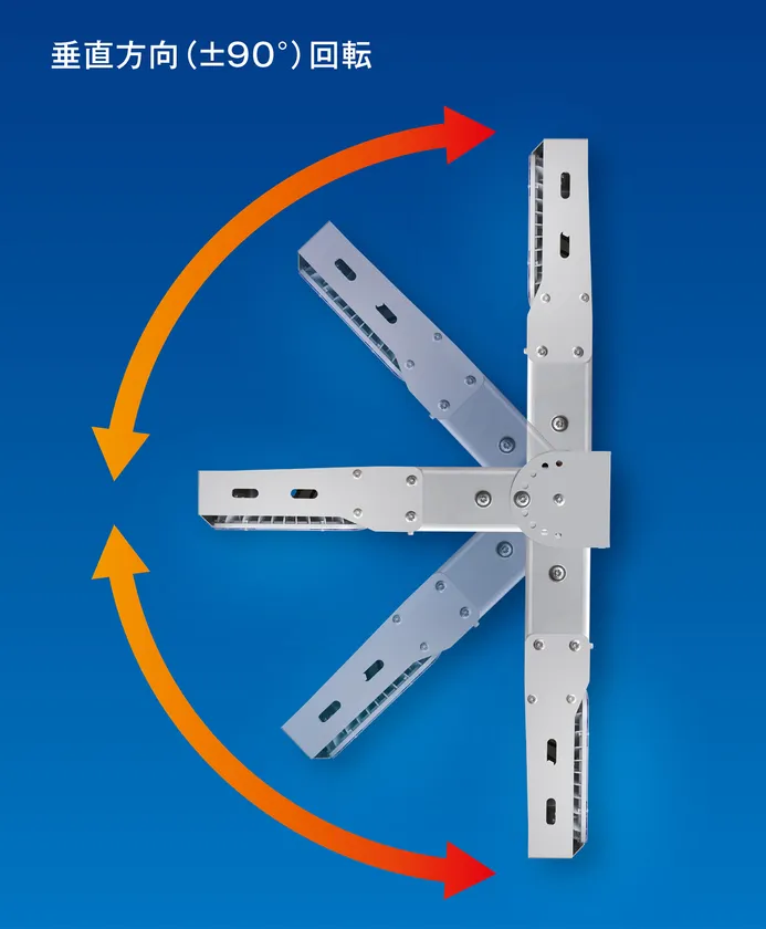 垂直方向(±90°)に角度を変更できるため、照射方向を任意に設定できます。