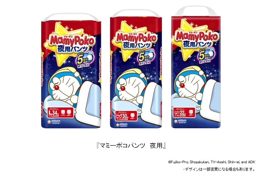 ユニ・チャーム株式会社(代表取締役 社長執行役員:高原豪久)は、多くの方にご愛用いただいている「ドラえもんデザイン」の『マミーポコ』ブランドから、夜専用の紙おむつ『マミーポコパンツ 夜用』を2022年9月20日に全国で発売します。