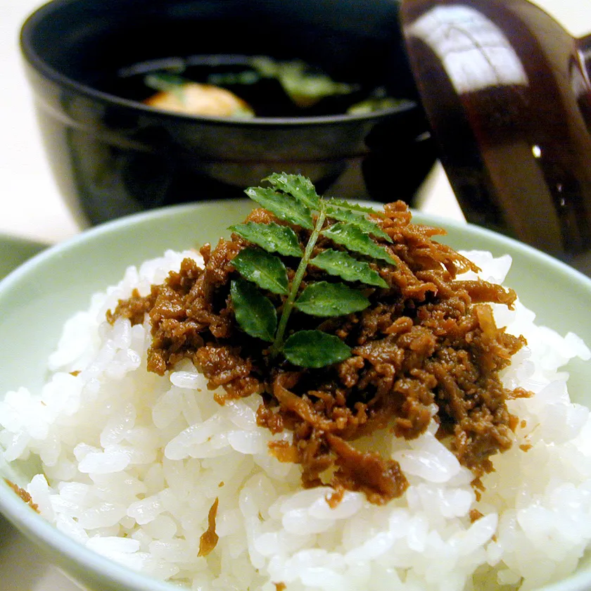 あつあつのご飯に乗せて、牛肉しぐれ煮を食べてみると濃い目の甘辛のタレに漬け込まれた牛肉がほどよい山椒の辛味とよくマッチしていて「京のめんたい」に負けず劣らずご飯がススム「京のごはんのおとも」です。