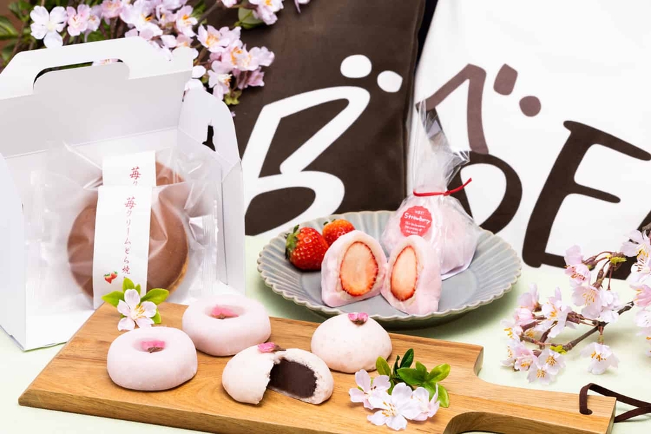 菓子処「和泉屋」では、桜やいちごクリームの大福、いちごクリームどら焼きなどをテイクアウトできます。のんびりくつろぎながらスイーツを楽しむのはTAMARIBAでもOK!BEB5軽井沢では、カトラリーの貸し出しをしているので好きに盛り付けて仲間とシェアするのもおすすめです。