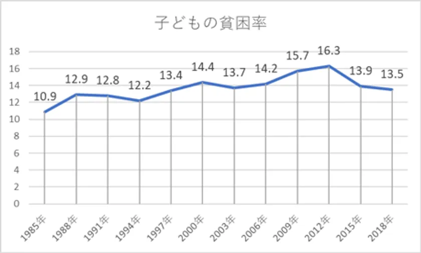厚生労働省が2020年7月17日に公表した「2019年 国民生活基礎調査」において、「子どもの貧困率(17歳以下)」が13.5%(2018年)と、子どもの7人に1人が貧困状態にあることが明らかになりました。
