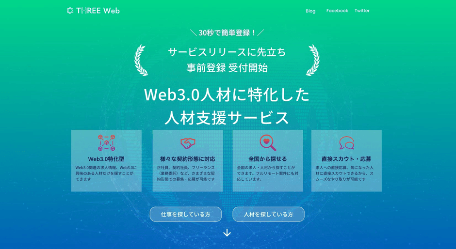 Web3.0特化求人サービス「Three Web」の事前登録開始(事前登録特典あり)