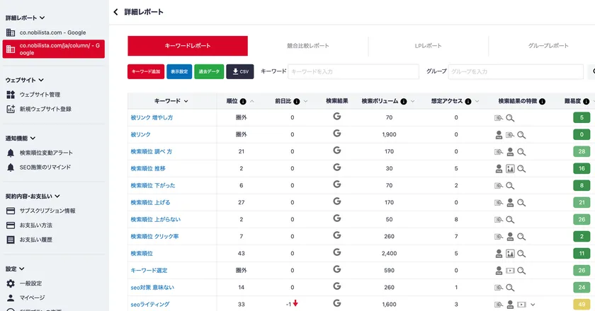 Nobilista(ノビリスタ)は、クラウド型のSEO検索順位チェックツールです。