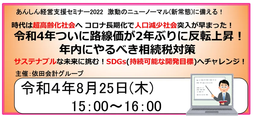 第106回経営支援セミナー 「R4路線価公開!年内にやるべき相続税対策」 2022年8月25日にオンライン配信