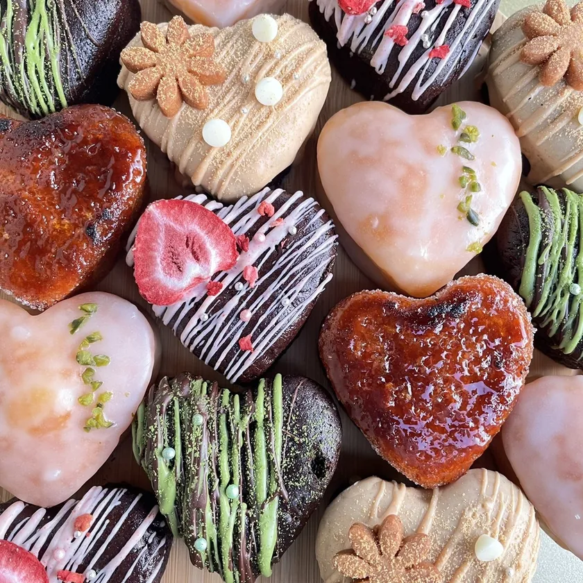 同じく姉妹店パティスリーリアンの人気商品のハート型のマドレーヌはノーマル、レモン、塩キャラメルとそのままでもしっとりふんわりの食感でおいしい焼菓子。それをコーディングやキャラメリゼすることで味にも見た目にもアクセントがつき、何個も食べたくなるようなやみつきスイーツに仕上げました。