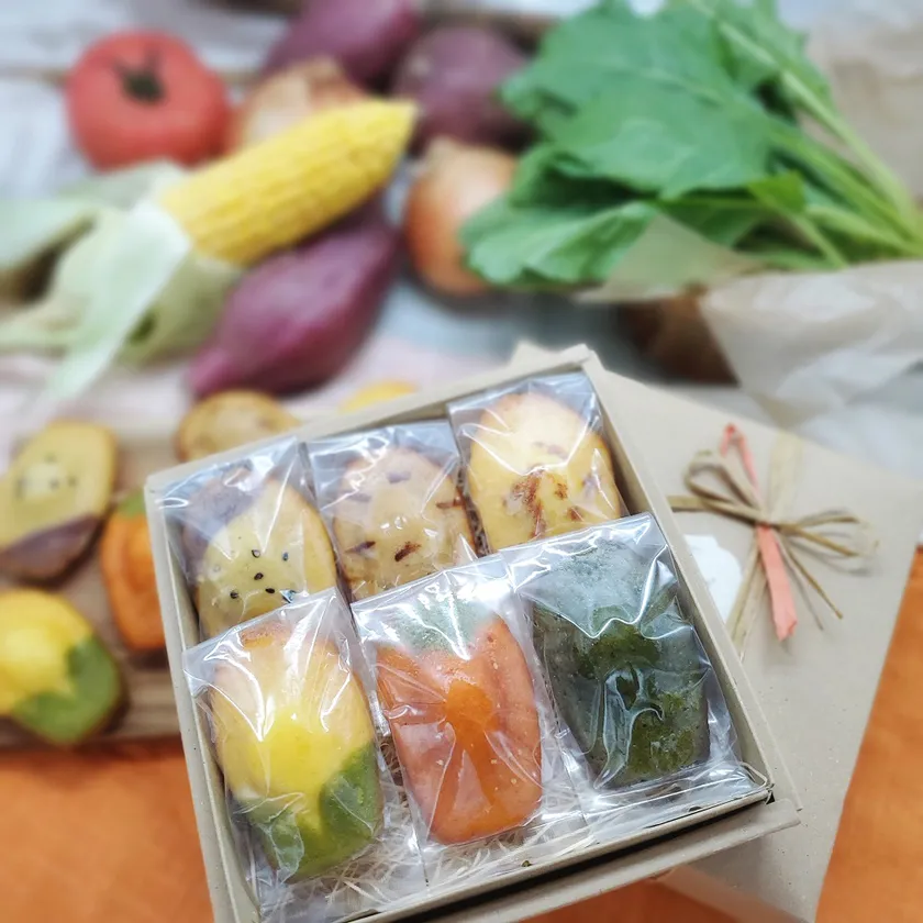 おやさいマドレーヌをカジュアルに楽しめるセット。包装を省いた簡易箱にてお届けします。
