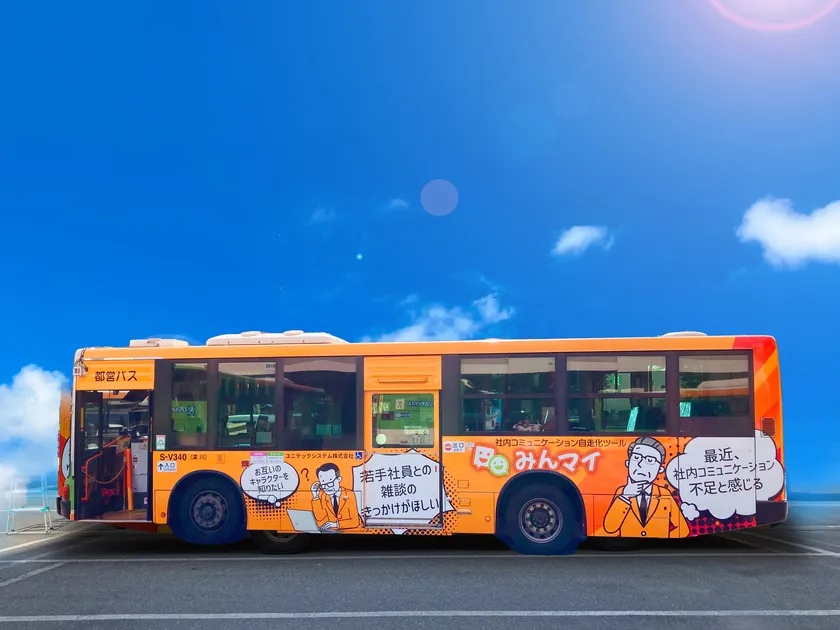 ユニテックシステム株式会社(本社:東京都台東区、代表取締役:渡辺 正憲)は、2022年8月9日より社内コミュニケーション自走化ツール「みんマイ」のラッピングバスの運行を開始しました。