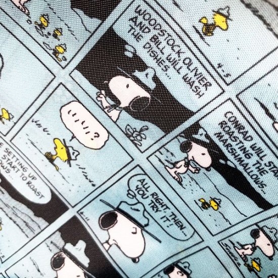 ブラウンカラーには、テントの上で寝そべるスヌーピーがデザインされています。スマホと比べるとサイズ感も分かりやすいでしょうか♪コンパクトで軽いので、気軽に使っていただけるサイズです。