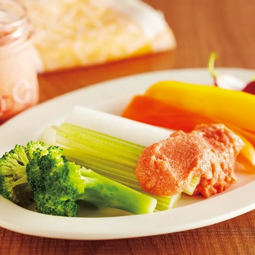 明太子との相性を考慮し、くちどけのよいマヨを使用し、薄口しょうゆと和からしを少し加えることでコクを出しています。