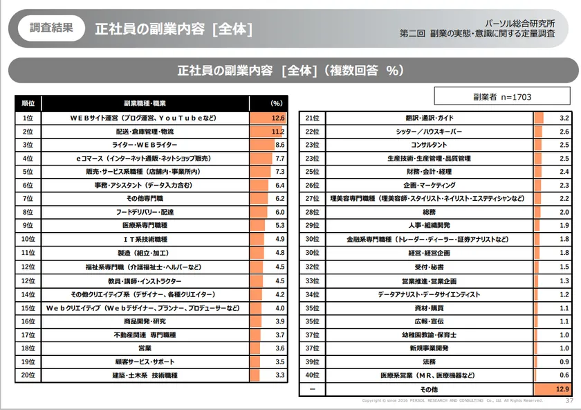 正社員の副業内容(副業者n=1,703)