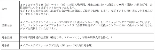 ※その他、虎ポイントの詳細は阪神タイガース公式ホームページ(ファンクラブ)をご確認ください。