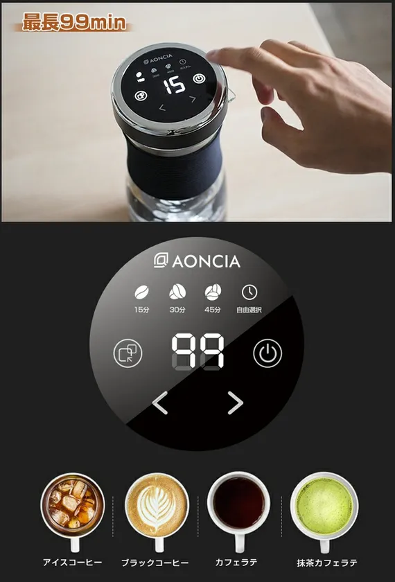 抽出時間はタッチパネルで15分間/30分間/45分間の3段階に設定できるほか、1分間から99分間まで1分間単位で設定できるカスタムモードもあり、LED画面に完了時間が表示されるので、待ち時間を簡単に管理することができます。