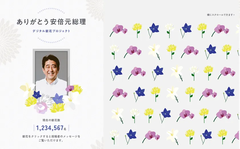 安倍元総理へのデジタル献花サービスが8月25日(木)開始 だれでも気軽にデジタル献花が可能なプラットフォーム