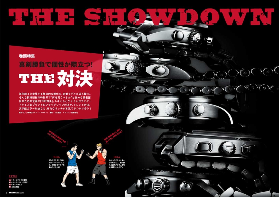 ブライトリングの2大定番が表紙を飾る今号は、「THE対決」と題した巻頭特集で時計購入を検討する際に頭を悩ますさまざまな選択肢から特に難問をピックアップし、WN流の最適解を導き出しました。昨年好評だった「時計好きスナップ」特集は全国7都市の取材とTwitterでの呼びかけで時計好きのリアルをお伝えします。