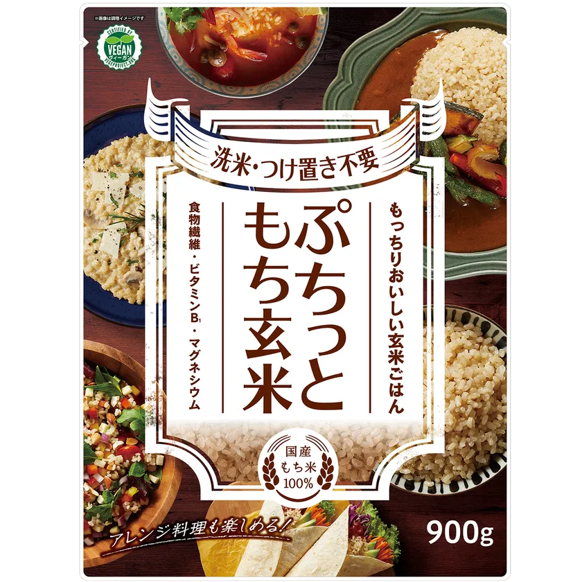 ぷちっともち玄米は2013年の発売以来、もちもちとしたおいしい玄米として多くのお客様からご愛顧をいただいています。年々、健康に対する意識は幅広い世代において高まると同時に、簡便性も求められています。「毎日おいしく食べて健康に!」を叶えるとともに、ヴィーガン認証マークを記載することで、サスティナブルな食の選択でもあるヴィーガンを発信し、求めている方にも届きやすくしています。