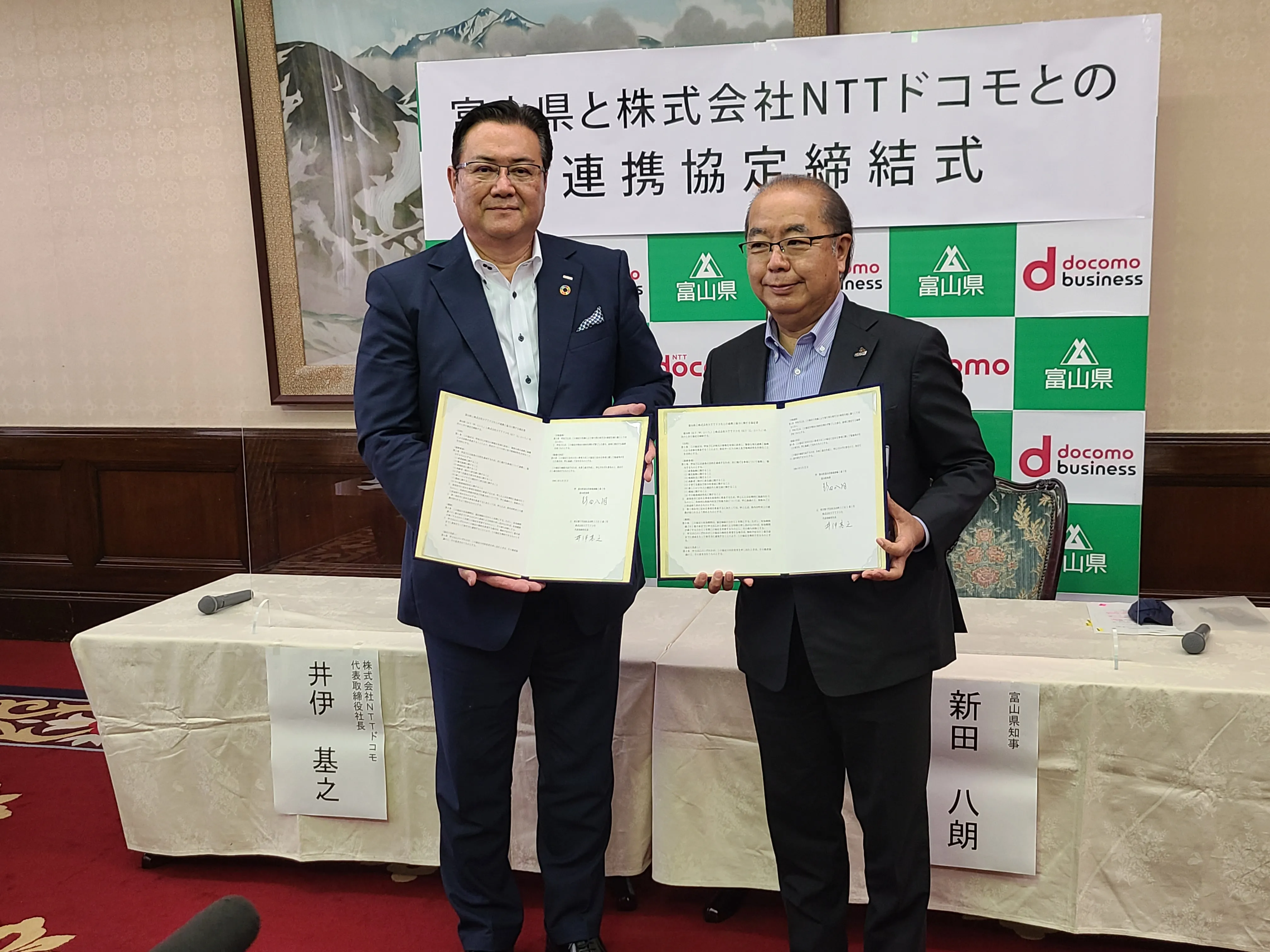 株式会社NTTドコモ(本社:東京都千代田区、代表取締役社長:井伊 基之、以下、ドコモ)は、富山県(知事:新田 八朗)と、緊密な相互連携と協働による活動を推進することにより、県民サービスの向上および地域活性化を図ることを目的に、2022年8月22日(月)に連携協定を締結いたします。本協定は、相互人材派遣を通じ連携してきた富山県とドコモが、DX推進による産業振興などを通じ、富山県の地域活性化に向けて連携・協働した活動を一層推進させるため締結するものです。