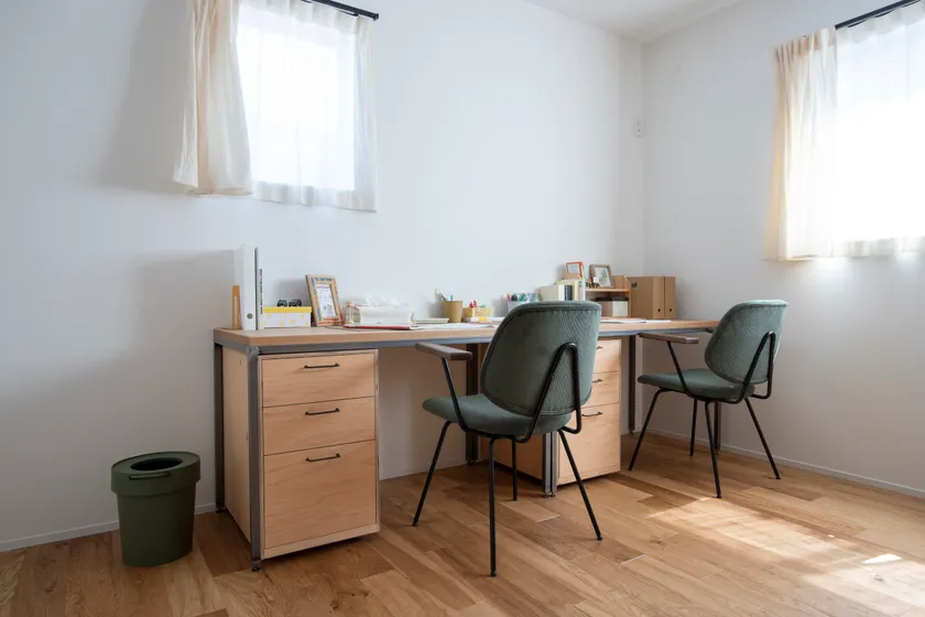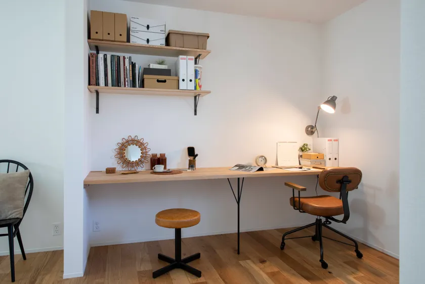 他にも、住まい手の暮らしに合わせてアレンジできるように、多彩なカスタムメニューを揃えています。カウンター収納を備えた家事室、書斎や子供の勉強部屋につかえるデスク、寝室の過ごし方をアップグレードしてくれるヘッドボードなど。過ごし方の希望に応じてメニューを追加いただけます。